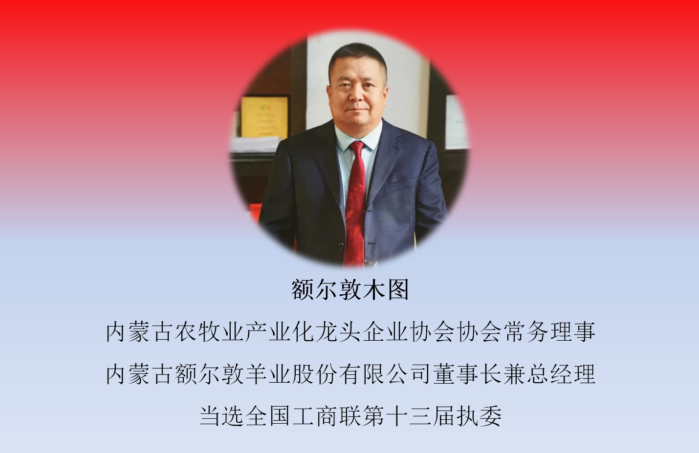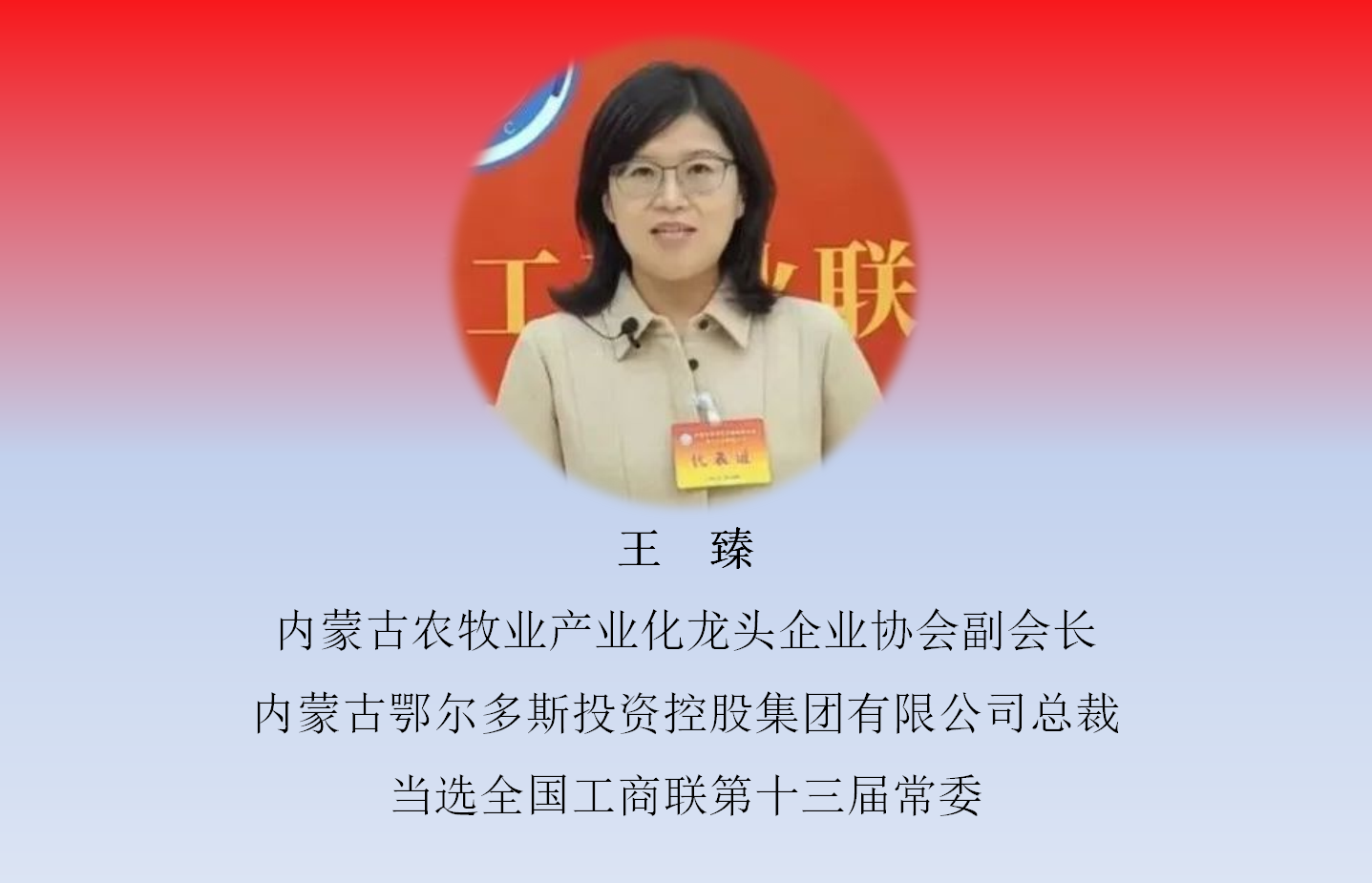 12月11日,中國工商業(yè)聯(lián)合會第十三次全國代表大會在北京召開,大會選舉產(chǎn)生了中華全國工商業(yè)聯(lián)合會第十三屆執(zhí)行委員會。內(nèi)蒙古農(nóng)牧業(yè)產(chǎn)業(yè)化龍頭企業(yè)協(xié)會4家會員單位負責人當選新一屆常委和執(zhí)委。