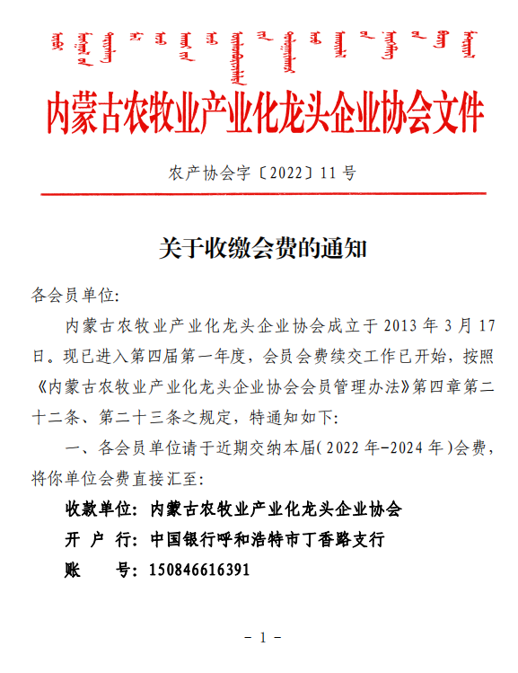 關(guān)于收繳會(huì)費(fèi)的通知